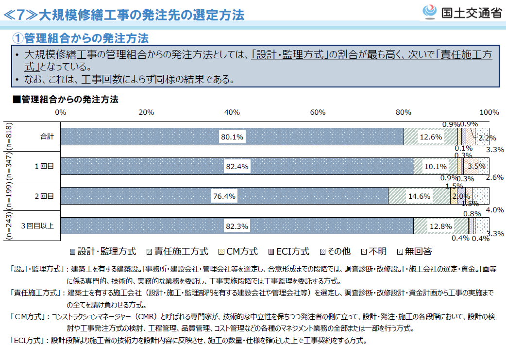大規模修繕の設計コンサルのプランです。 総会決議の不要のため理事会の負担も軽減が見込めます。 ※原則は事前調査の上、御見積りとなります。 ※総会決議の有無は管理組合の判断となり、ご自由にご選択頂けます。 一般的な相場(3,500,000円~) (想定35住戸前後、延床面積4,500㎡前後の場合) 大規模修繕設計コンサル(工事費の5~15%)3,500,000円~ 相場比2,100,000円以上お得なプランとなります。 |